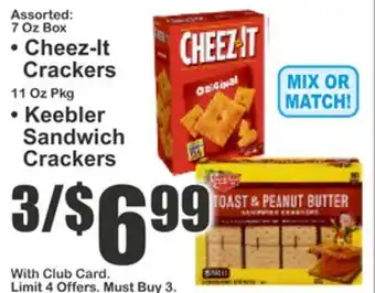 Assorted: 7 Oz Box • Cheez-It Crackers 11 Oz Pkg • Keebler Sandwich Crackers