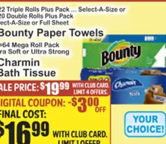 Bounty Paper Towels, Charmin Bath Tissue Discount at Key Food