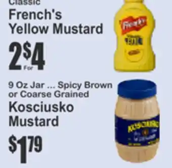 Classic French's Yellow Mustard ... 9 Oz Jar Spicy Brown or Coarse Grained Kosciusko Mustard Deal at Key Food