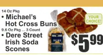 • Michael's Hot Cross Buns • Dere Street Irish Soda Scones deals and online offers from the current Key Food weekly ad