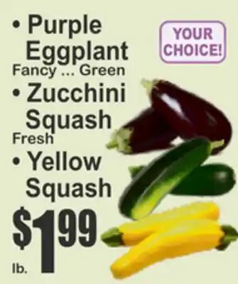 This offer is available in various stores, view all products to get the cheapest • Purple Eggplant Fancy ... Green • Zucchini Squash Fresh • Yellow Squash. If you'd like to find out whether this product has a bigger discount in another store, check the category 'Grocery'. You may also find these offers interesting: Eggplant, Eggplant, Zucchini or Yellow Squash, • Purple Eggplant Fancy ... Green • Zucchini & Yellow or Zucchini Squash.