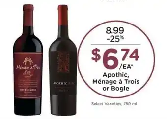 This Apothic, Ménage à Trois or Bogle is available in the following branches based on your set location: