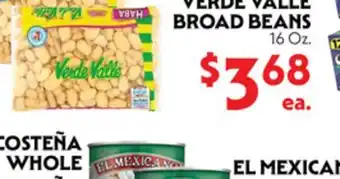 This offer is available in various stores, view all products to get the cheapest VERDE VALLE BROAD BEANS. If you'd like to find out whether this product has a bigger discount in another store, check the category 'Grocery'. You may also find these offers interesting: Verde Valle MAYOCOBA, VERDE VALLE CHICKPEAS & Verde Valle Lentils or Chickpeas.