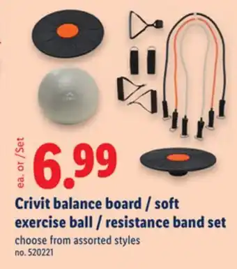 Crivit balance board/soft exercise ball/resistance band set deals and online offers from the current Lidl weekly ad
