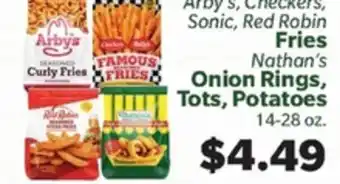 Arby's, Checkers, Sonic, Red Robin Fries Nathans Onion Rings, Tots, Potatoes