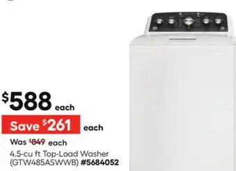 This offer is available in various stores, view all products to get the cheapest 4.5-cu ft Top-Load Washer. If you'd like to find out whether this product has a bigger discount in another store, check the category 'DIY'. You may also find these offers interesting: 4.2-cu ft Removable Agitator Top-Load Washer, GE 4.5 cu. ft. Top Load Washer in Diamond Gray with Dual Act... & 4.6-cu ft Front-Load Washer.