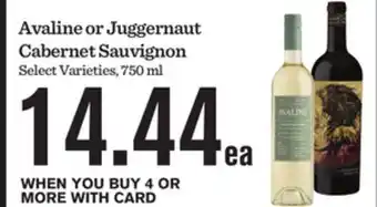 Avaline or Juggernaut Cabernet Sauvignon deal in the weekly ad of Mariano's