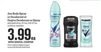 Axe Body Spray or Deodorant or Degree Deodorant or Spray deal in the weekly ad of Mariano's