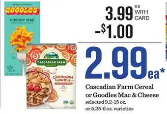 Cascadian Farm Cereal or Goodles Mac & Cheese deals and online offers from the current Mariano's weekly ad