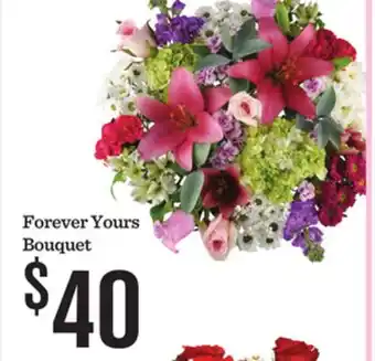 Mariano's offers a wide collection of products, besides the Forever Yours Bouquet. Keep an eye on the weekly Mariano's weekly ad to find the best offers and promotions. Besides Forever Yours Bouquet, you can also find the following offers: Now and Forever arrangement, Valentine's Forever Rose & Forever Pals Puppy Pads.