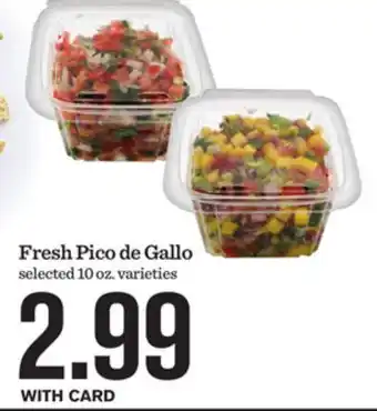 This offer is available in various stores, view all products to get the cheapest Fresh Pico de Gallo. If you'd like to find out whether this product has a bigger discount in another store, check the category 'Grocery'. You may also find these offers interesting: Fresh Piloncillo or Hoja de Plátano, Bakery Fresh Rosca de Reyes & Bakery Fresh Rosca de Reyes.