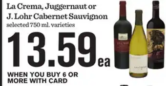 La Crema, Juggernaut or J. Lohr Cabernet Sauvignon deals and online offers from the current Mariano's weekly ad