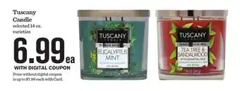 The Tuscany Candle is available this week in the weekly ad of Mariano's, with an attractive discount. On this page, you’ll find all the information about current promotional prices, terms of the promotion, and special discounts. Browse through the weekly ad and check out other offers and promotions related to Tuscany Candle to ensure you get the best deal.The deal for Tuscany Candle is valid in week 04 and can be found in the current weekly ad. Has the deal expired? No worries, you can always check other interesting offers in the weekly ad. You can also follow the product category to be immediately informed when Tuscany Candle is back in the weekly ad of Mariano's.