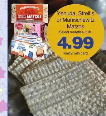 Yehuda, Streit's or Manischewitz Matzos offers and online specials, straight from the current Mariano's ad
