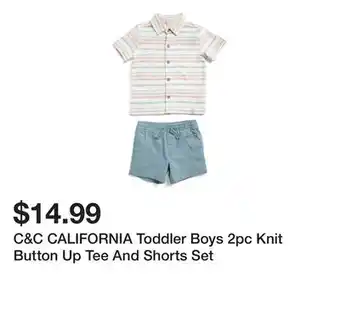Current C&C CALIFORNIA Toddler Boys 2pc Knit Button Up Tee And Shorts Set deal at Marshalls from 10-02 until 16-02.