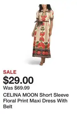 CELINA MOON Short Sleeve Floral Print Maxi Dress With Belt Discount at Marshalls