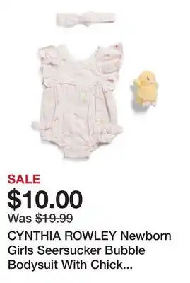 CYNTHIA ROWLEY Newborn Girls Seersucker Bubble Bodysuit With Chick Lovey Plush Toy Deal at Marshalls