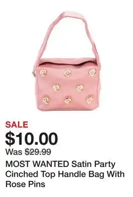MOST WANTED Satin Party Cinched Top Handle Bag With Rose Pins offers and online specials, straight from the current Marshalls ad
