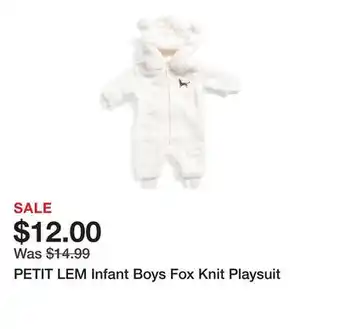 Current PETIT LEM Infant Boys Fox Knit Playsuit deal at Marshalls from 13-01 until 19-01.