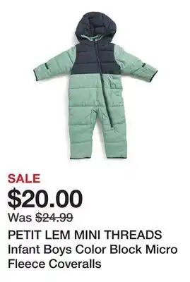 PETIT LEM MINI THREADS Infant Boys Color Block Micro Fleece Coveralls deals and online offers from the current Marshalls weekly ad