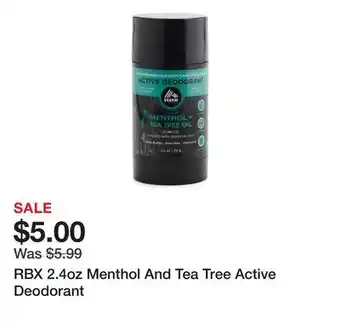 RBX 2.4oz Menthol And Tea Tree Active Deodorant Deal at Marshalls