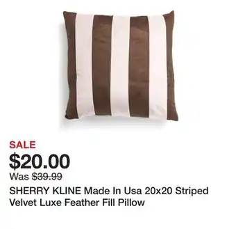 SHERRY KLINE Made In Usa 20x20 Striped Velvet Luxe Feather Fill Pillow Discount at Marshalls