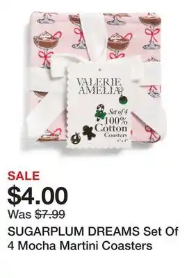 SUGARPLUM DREAMS Set Of 4 Mocha Martini Coasters offers and online specials, straight from the current Marshalls ad