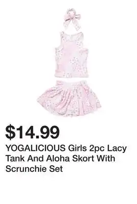 YOGALICIOUS Girls 2pc Lacy Tank And Aloha Skort With Scrunchie Set Deal at Marshalls