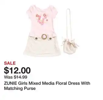 This offer is available in various stores, view all products to get the cheapest ZUNIE Girls Mixed Media Floral Dress With Matching Purse. If you'd like to find out whether this product has a bigger discount in another store, check the category 'Department Stores'. You may also find these offers interesting: girls augusta dress, GIRLS' DRESS OR ROMPER & belted floral shirt mini dress.