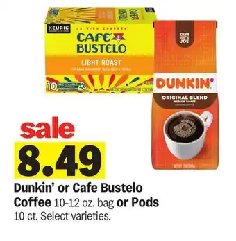 Dunkin' or Cafe Bustelo Coffee 10-12 oz. bag or Pods 10 ct Deal at Meijer