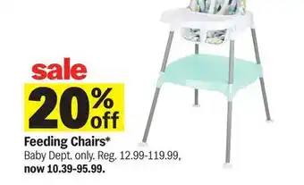 In which store will Feeding Chairs be on sale next week? These are some of the questions we get asked a lot. It’s only normal, nobody likes to pay too much! Our team keeps an eye on all deals and lists them online as soon as possible. So you can customize your (shopping) list with this week's offers and those of next week. Make sure to check next week’s Meijer ad, some of the specials are only available next week or online.Frequently asked questions about Feeding Chairs