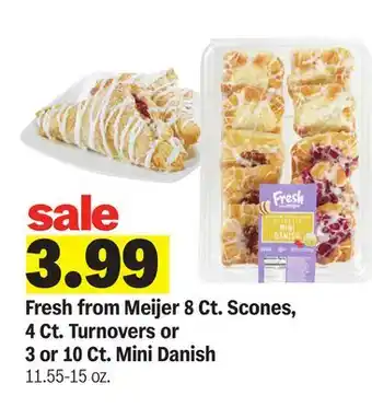 Fresh from Meijer 8 Ct. Scones, 4 Ct. Turnovers or 3 or 10 Ct. Mini Danish deals and online offers from the current Meijer weekly ad