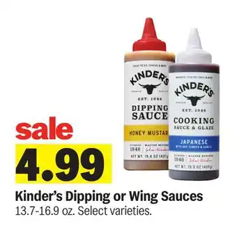Meijer offers a wide collection of products, besides the Kinder's Dipping or Wing Sauces. Keep an eye on the weekly Meijer weekly ad to find the best offers and promotions. Besides Kinder's Dipping or Wing Sauces, you can also find the following offers: Kinder's Dipping, Wing, or Cooking Sauce, Kinder's Specialty Sauces & Kinder's Wing Sauce & Dip.