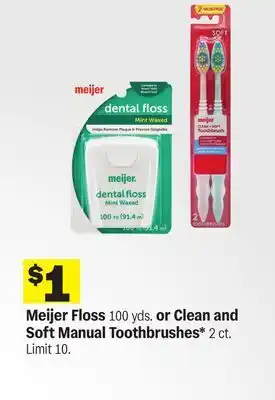 Meijer Floss 100 yds. or Clean and Soft Manual Toothbrushes* 2 ct offers and online specials, straight from the current Meijer ad