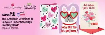 on 1 American Greetings or Recycled Paper Greetings Greeting Card deals and online offers from the current Meijer weekly ad