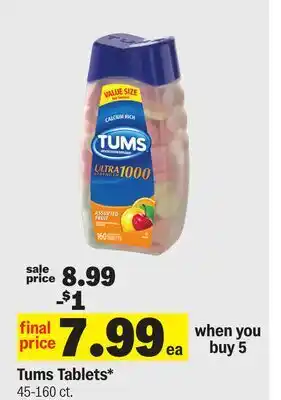 The Tums Tablets is now on sale at Meijer, valid from 28-01-2026 to 03-02-2026. Check out the latest Meijer weekly ad for more exclusive offers. Order Tums Tablets online via the Meijer website or buy it at a nearby store. At Adspecials.us, you'll always find the best Tums Tablets deals. Compare the current offers to see if Tums Tablets will be featured in next week’s weekly ad. We post the weekly ads quickly, so you can plan your shopping smartly and stay updated on the latest Tums Tablets deals, discovering which stores have the best offers. Adjust your shopping list and check out the Meijer weekly ad for next week for exclusive in-store promotions.Frequently asked questions about Tums Tablets