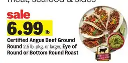 Certified Angus Beef Ground Round 2.5 lb pkg or larger, Eye of Round or Bottom Round Roast