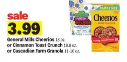 General Mills Cheerios 18 oz. or Cinnamon Toast Crunch 18.8 oz. or Cascadian Farm Granola 11-16 oz