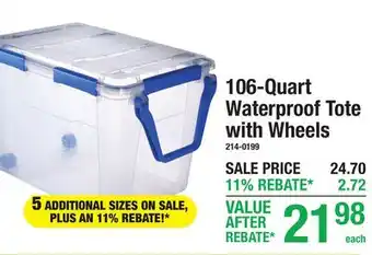 106-Quart Waterproof Tote with Wheels deals and online offers from the current Menards weekly ad