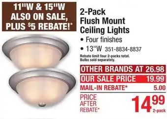 The price of 2-Pack Flush Mount Ceiling Lights can be found at the top of the page, together with the dates during which the offer is available. You can also check the price in the current Menards weekly ad or on the Menards website. Promotional offers assure you of buying Menards products at the lowest price.