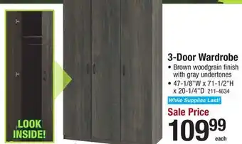 3-Door Wardrobe Discount at Menards