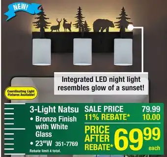 The price of 3-Light Natsu can be found at the top of the page, together with the dates during which the offer is available. You can also check the price in the current Menards weekly ad or on the Menards website. Promotional offers assure you of buying Menards products at the lowest price.