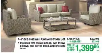 The price of 4-Piece Roswell Conversation Set can be found at the top of the page, together with the dates during which the offer is available. You can also check the price in the current Menards weekly ad or on the Menards website. Promotional offers assure you of buying Menards products at the lowest price.