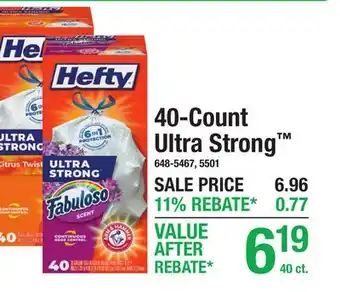 Menards offers a wide collection of products, besides the 40-Count Ultra Strong. Keep an eye on the weekly Menards weekly ad to find the best offers and promotions. Besides 40-Count Ultra Strong, you can also find the following offers: Hefty Ultra Strong Citrus Twist 13 Gallon Trash Bags 40 Count, Charmin Bath Tissue Ultra Strong & True Living Bath Tissue Ultra Strong.