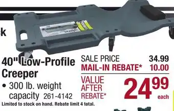 The price of 40 Low-Profile Creeper can be found at the top of the page, together with the dates during which the offer is available. You can also check the price in the current Menards weekly ad or on the Menards website. Promotional offers assure you of buying Menards products at the lowest price.