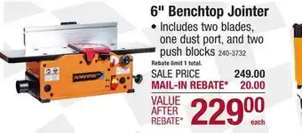 The price of 6 Benchtop Jointer can be found at the top of the page, together with the dates during which the offer is available. You can also check the price in the current Menards weekly ad or on the Menards website. Promotional offers assure you of buying Menards products at the lowest price.