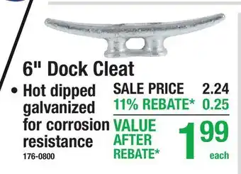 The price of 6 Dock Cleat can be found at the top of the page, together with the dates during which the offer is available. You can also check the price in the current Menards weekly ad or on the Menards website. Promotional offers assure you of buying Menards products at the lowest price.
