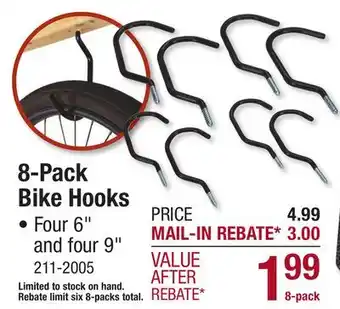 The price of 8-Pack Bike Hooks can be found at the top of the page, together with the dates during which the offer is available. You can also check the price in the current Menards weekly ad or on the Menards website. Promotional offers assure you of buying Menards products at the lowest price.