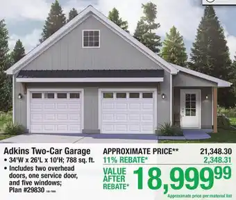 Adkins Two-Car Garage deals and online offers from the current Menards weekly ad
