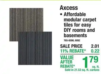 The price of Affordable modular carpet tiles for easy DIY rooms and basements can be found at the top of the page, together with the dates during which the offer is available. You can also check the price in the current Menards weekly ad or on the Menards website. Promotional offers assure you of buying Menards products at the lowest price.